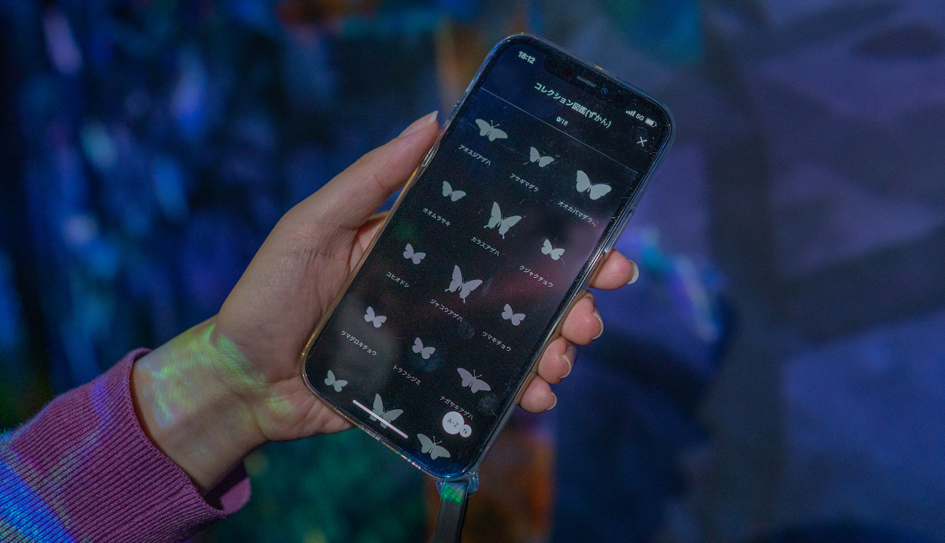 蝶の種類は、全部で18種類。捕まえた蝶はアプリ内の【コレクション図鑑(ずかん)】に登録されていく。なかには見慣れない珍しい蝶もいるので、ぜひコンプリートを目指してみてほしい。